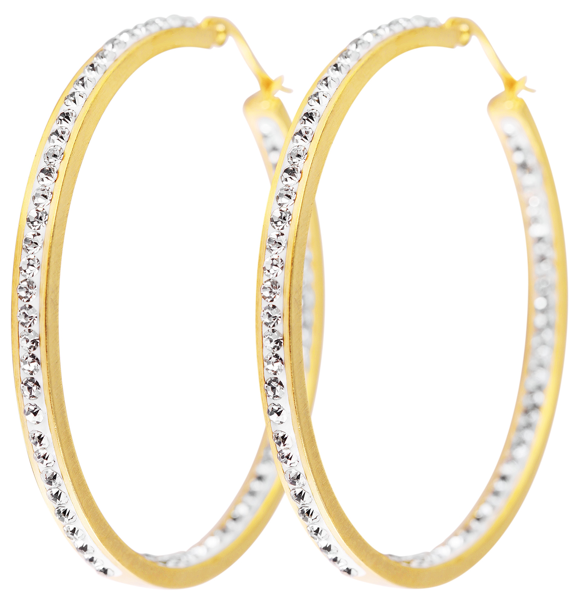 Produktinformationen "Akzent Edelstahl Creolen, goldfarbig, Similibesatz"