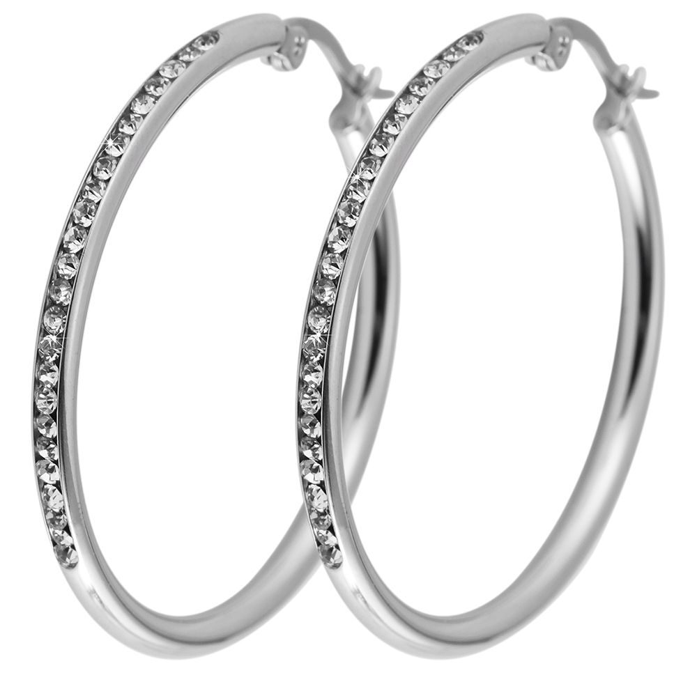 Akzent Edelstahl Creolen mit Similisteinchen, silberfarben